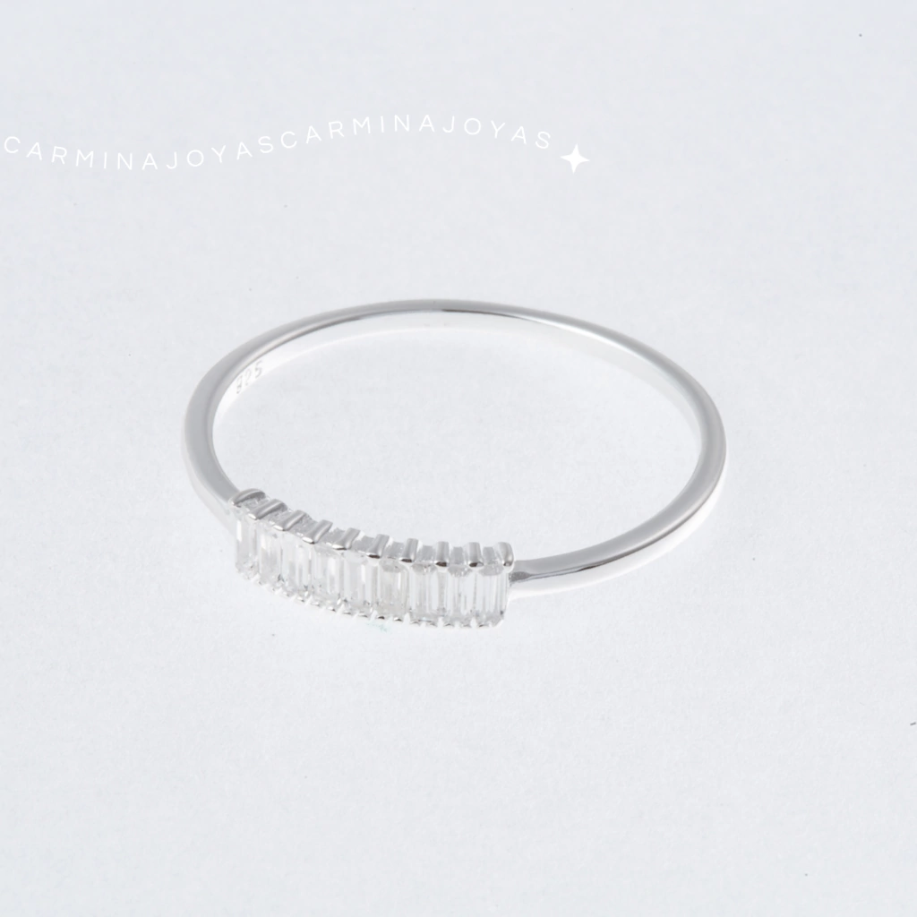Anillo realizado en plata 925 y cubics baguettes (cubic con recorte rectangular que realza el brillo de la piedra)