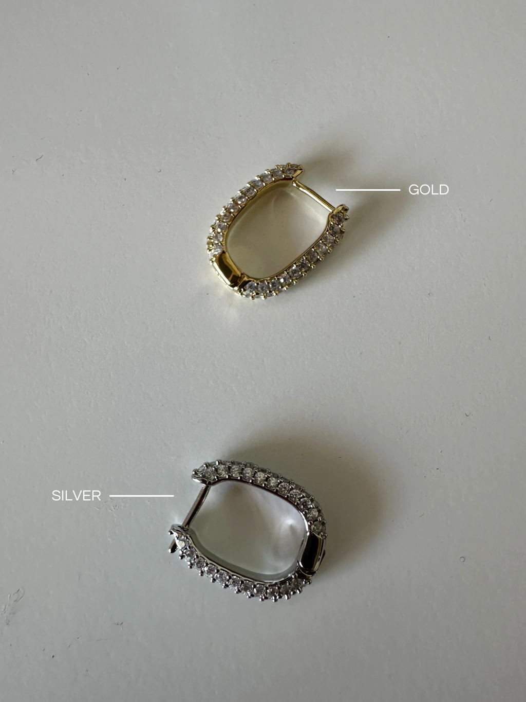 Aros argollas realizados en plata aleada (plata combinada con otros metales), baño en oro y cristales engarzados. Su brillito sutil y su forma rectangular las convierten en las argollitas perfectas.