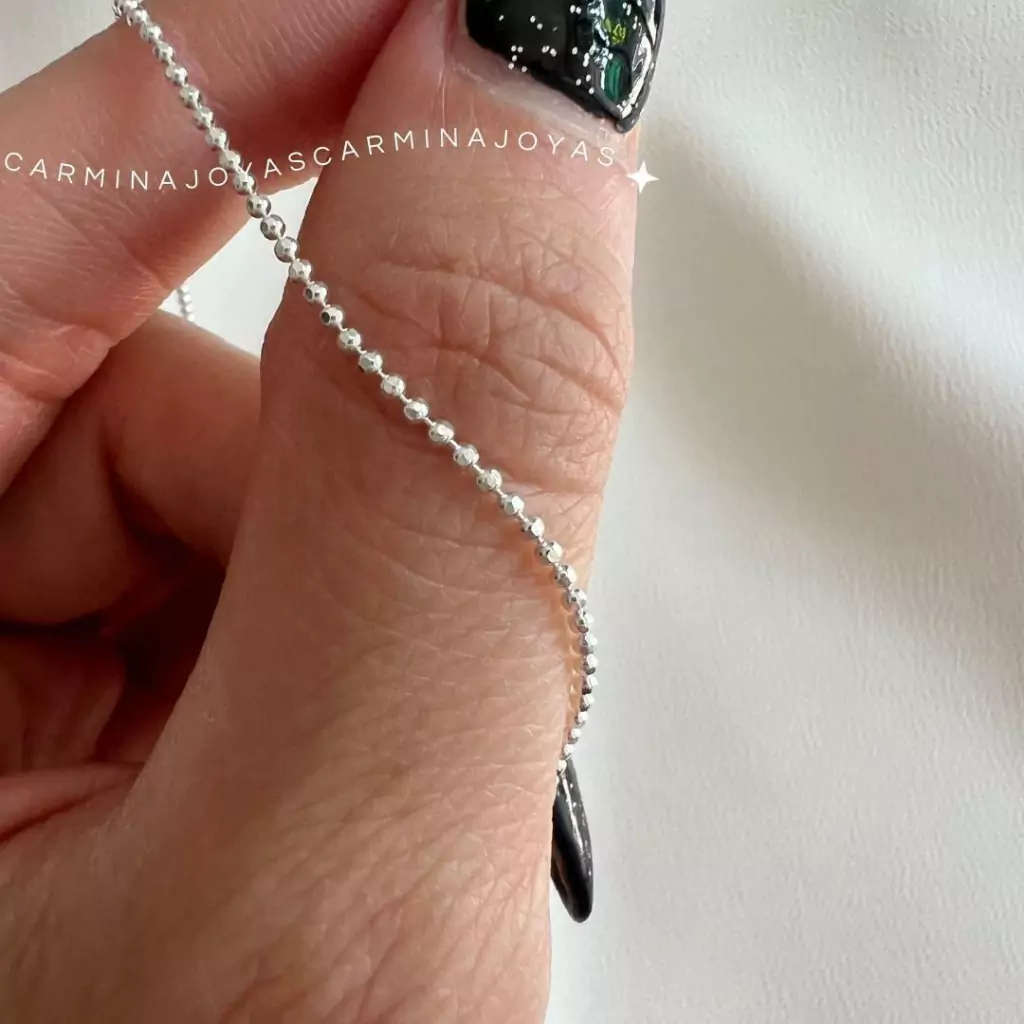 Cadena realizada en plata italiana con diseño de bolitas diamantada. La misma bolita tiene un facetado que hace que con el movimiento brille aún más. La vas a amar ♥. Sola queda divina y con un dije también.